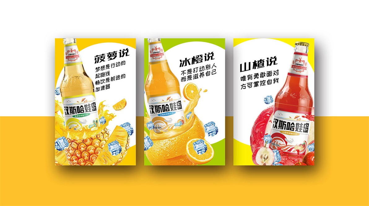 產(chǎn)品的同質(zhì)化,市場(chǎng)分類的競爭,促使南陽宛西飲料有限公司,決定另辟蹊徑,重新賦予旗下品牌“哈娃島”新的產(chǎn)品視覺特點(diǎn)及傳達(dá)概念。在此之前,宛西飲料在市場(chǎng)運(yùn)作中已經(jīng)打下了深厚的基礎(chǔ),然而作為快消品如何與消費(fèi)者之間產(chǎn)生聯(lián)系,打造產(chǎn)品獨(dú)特的IP傳播點(diǎn),營造產(chǎn)品氛圍故事性,是至覺此次亟需解決的問題。帶著這些問題下面讓我們來看一下漢斯哈娃島新的產(chǎn)品視覺形象打造。