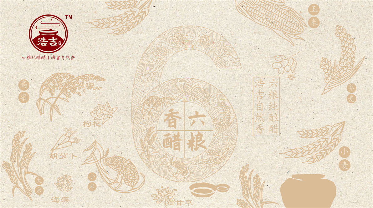 目前的市場(chǎng)產(chǎn)品傳統(tǒng)的調(diào)味食品,已不僅僅只是烹飪加醋的定義。從營(yíng)養(yǎng),工藝,健康、口味等各式各樣都有,那么浩吉的優(yōu)勢(shì)又該如何提煉并傳播呢?通過(guò)市調(diào)我們市場(chǎng)產(chǎn)品特點(diǎn)的挖掘,再次與客戶進(jìn)行深入的的溝通,浩吉醋的特點(diǎn)就是用六種糧食釀造而成,原料的豐富,造就產(chǎn)品的品質(zhì)。因此我們決定將“六糧”的產(chǎn)品概念進(jìn)行消費(fèi)傳遞,并提煉廣告語(yǔ):六糧純釀醋,浩吉自然香。